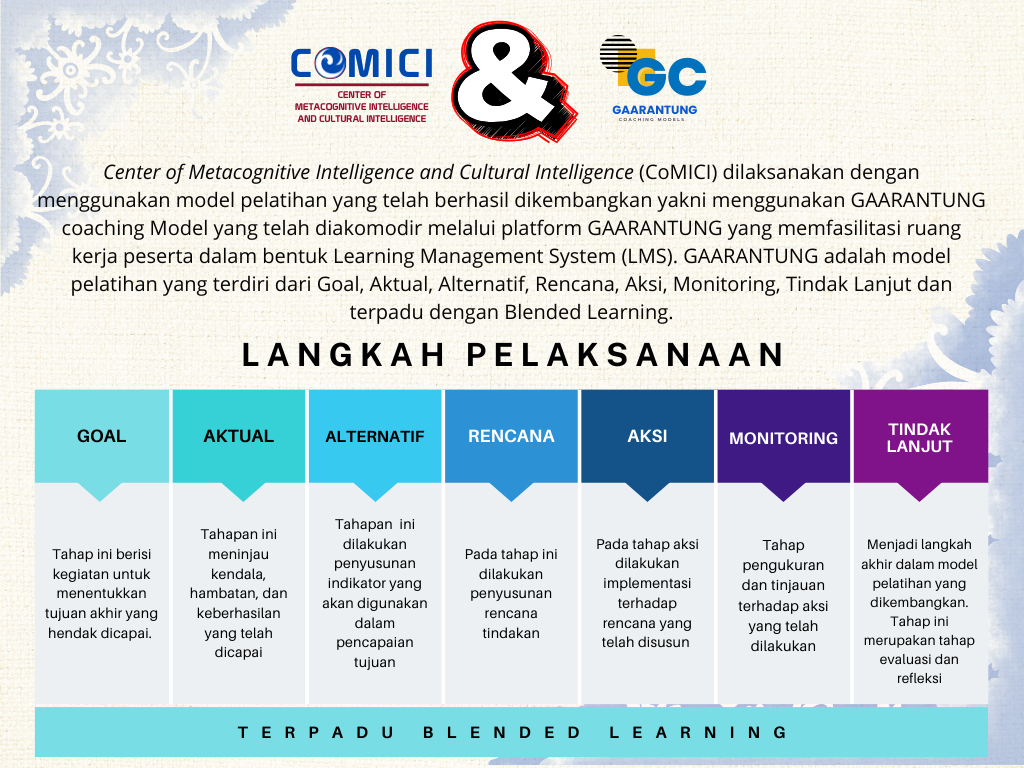 Sejak berdirinya, CoMICI telah melaksanakan berbagai kegiatan melalui kerja sama dengan Kelompok Kerja Kepala Sekolah (K3S) Kabupaten Bengkayang yang meliputi pendampingan managerial skills bagi kepala sekolah dasar di Kabupaten Bengkayang, pendampingan pembelajaran STEM bagi kepala sekolah dan guru-guru sekolah dasar, optimalisasi komunitas belajar, pendampingan pembelajaran berdiferensiasi, penyusun strategi dan media ajar, pengelolaan sistem pendidikan di lingkup sekolah dan perguruan tinggi, hingga menjadi tim perumusan instrumen tes untuk seleksi perangkat desa. Seluruh kegiatan dirancang untuk meningkatkan kompetensi kepemimpinan, pengelolaan, dan strategi berbasis kecerdasan metakognitif dan kecerdasan budaya. Diseminasi ini dilakukan tidak hanya melalui tatap muka fisik, melainkan juga secara tatap maya yang diakomodir melalui platform GAARANTUNG yang memfasilitasi ruang kerja peserta dalam bentuk Learning Management System (LMS). GAARANTUNG merupakan sebuah coaching model yang telah berhasil dikembangkan dan merupakan model yang akan digunakan dalam kegiatan CoMICI.